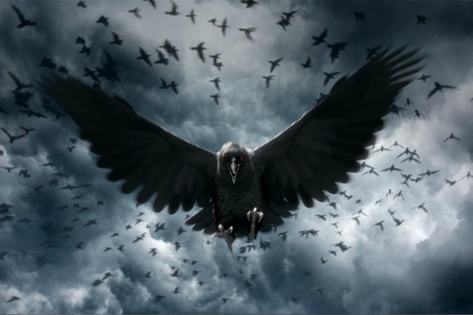 Но... что это? Она не может сдвинуться с места! Ноги пристыли к земле, будто обутые в кандалы и напрочь прикованные. Какая-то сила сверху плотно вдавливает вниз. Другая - снизу втягивает в землю, пропитывая ноги жутким холодом, расплывается по телу, пробирается изнутри всё выше. Тяжесть застывает и стискивает кольцом всё тело... Кажется, ещё мгновение - и она превратится в каменную глыбу-статую. Огромные чёрные вороны, неизвестно откуда взявшиеся, низко пролетая, хлопают крыльями, зловеще галдят над головой...