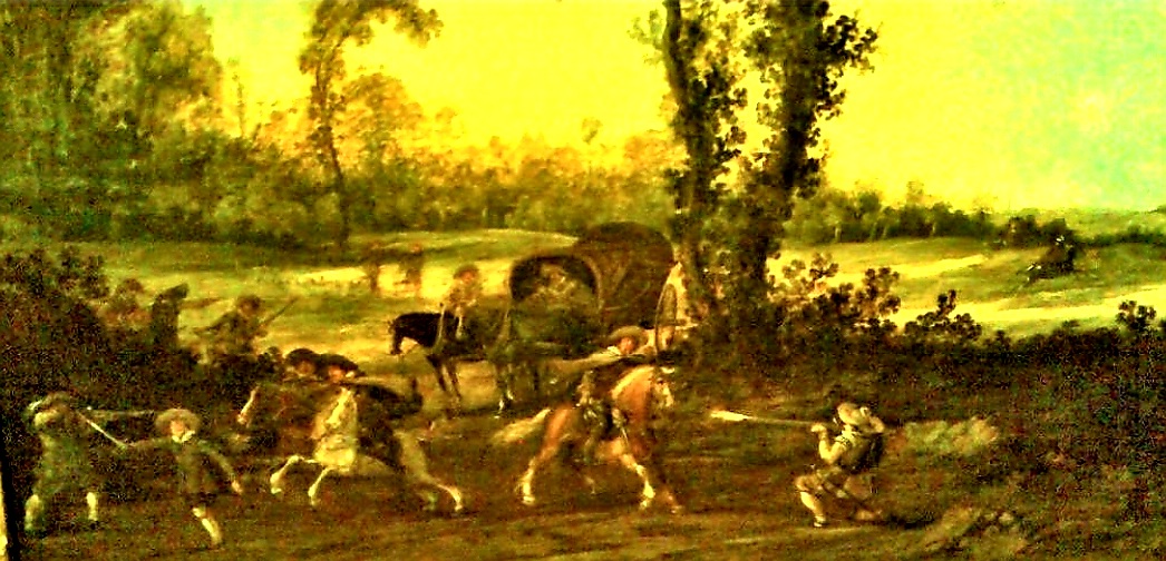 Художник в обвинительно — художественной форме как бы отдает самому себе и мировому сообществу в целом отчет в том, откуда на самом деле растут ноги беспредела, преступности и разбоя. Исторический документ за подписью свидетеля, гр. Esaias van de Velde хранится в фондах музея обезображенного искусства им. А.С. Пушкина в Москве (инв. № 2025) в качестве вещественного доказательства западноевропейского происхождения порока вооруженного разбоя на большой дороге мировой цивилизации.