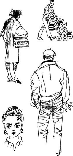 Только смешавшись с толпой прохожих, только сделавшись рядовым пешеходом, можно надеяться в какой-то степени стать с городом на «ты», познакомиться с ним поближе. И вот мы в центре города. Вокруг большие каменные дома в пять, шесть, десять этажей; поток автомашин разных марок и расцветок, автобусов, троллейбусов, мотороллеров и мотоциклов; люди, одетые поевропейски, спешат по своим делам. Проходит женщина с большой продуктовой сумкой, папа везет дочку в коляске, на углу задержался парень в кожаной куртке.