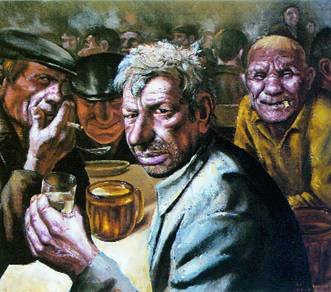 Совершенно случайно наткнулся в сети на картины художника Василия Шульженко, они меня очень зацепили и напомнили темы и образы, знакомые с совсем другой стороны… В этих картинах, посвященных жизни и быту обычной русской деревни вы не увидите никакого пафоса, никакого гламура, никаких розовых очков и попыток что-то приукрасить… только черная, неприглядная и какая-то простая в своей естественности действительность отечественной деревни в ее крайних формах… настоящий ГРОТЕСК, настоящее унижение, приземление повседневности. Все это выполнено абсолютно в стиле карнавальной культуры и в традициях Ф. Рабле, только не в литературном, а в художественном выражении… смотрел на эти морды и невольно вспоминал самых известных героев Рабле – Гаргантюа и Пантагруэля… я их себе такими же и представлял. Такие же гипертрофированные туловища, такой же акцент на элементарно-жизненных, низменных сторонах человеческой природы… И все это пронизано тонким и жестоким юмором и цинизмом, попыткой цинично и открыто посмотреть на жизнь обычной русской деревни… Художник своим творчеством намерено и, максимально возможно для себя, утрировал реальную жизнь, обнажил ее не лицеприятную сторону и по смеялся над ней… По-моему художник либо является поклонником творчества Рабле и очень чутко уловил суть его любимых героев, образов и тем. Либо читал специальную литературу, например, М. М. Бахтина с его карнавальной культурой… Когда мне по работе довелось читать М. М. Бахтина и вникать в суть его концепции карнавальной культуры гротеска – на примере творчества Ф. Рабле – я пытался зримо представить как это можно выразить графически, художественно… увидев картины этого художника я понял как, вот именно так… – не красиво, цинично и сатирично, но очень честно и открыто, со свойственным гротеску телесным низом и приземленностью… Вообще этого художника называют русским Иеронимом Босхом, в этом и правда есть доля истины…