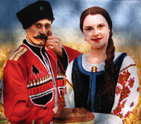 Молодых встречают АНДРЕЙ ПАВЛОВИЧ с АННОЙ СТЕПАНОВНОЙ, НИКОЛАЙ ИВАНОВИЧ. АНДРЕЙ ПАВЛОВИЧ держит на рушнике каравай. Они кланяются молодым, молодые кланяются родителям. АЛЕКСАНДР отламывает небольшой кусочек хлеба и аккуратно макает в соль, МАРУСЯ смотрит на него и отламывает кусок побольше. Все смеются. ДЕД МИТЯЙ кричит: «Быть Марусе в доме Хозяином! Смотри, Сашка, как бы она не взяла над тобой верх!» Все смеются. АЛЕКСАНДР громко отвечает: «Поживем, увидим!» НИКОЛАЙ ИВАНОВИЧ подносит молодым на тарелке по стопке водки, они берут их в руки.