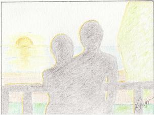 Рассветало. Вышли на балкон. Горизонт, подернутый легкой дымкой, постепенно наполнялся золотом, из-за которого выкатывался огненный шар…Золото превращалось в полосу, идущую к ним. Полоса расширялась и золотым становилось все море.