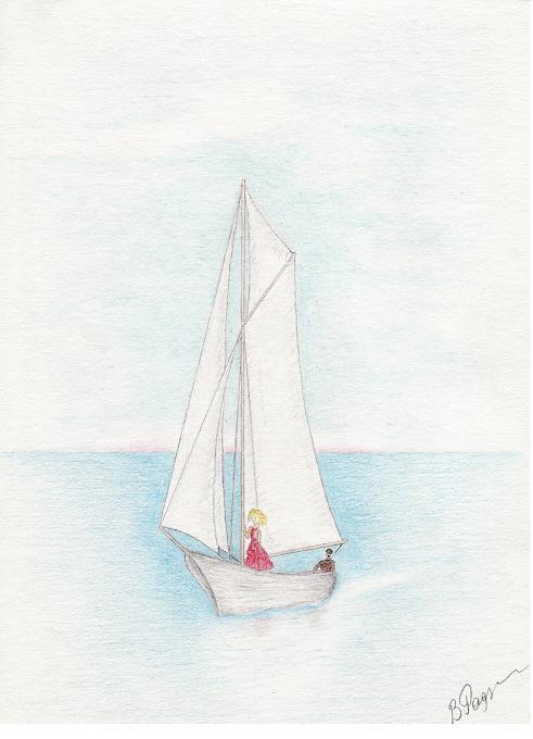 Лодка спущена на воду. Дядя на руле и грота - шкоте, племянник на кливер - шкоте. Есть ещё пассажир—тётя. Потом ей дают кливер, а племяннику доверяют под присмотром дяди руль. Паруса наполнены ветром, румпель пружинит в руках . Мальчишка впервые чувствует, как связаны паруса с рулем. Незабываемое ощущение. Известные ему названия частей лодки приобретают новый смысл и как бы оживают. А сама лодка кажется живым существом.
