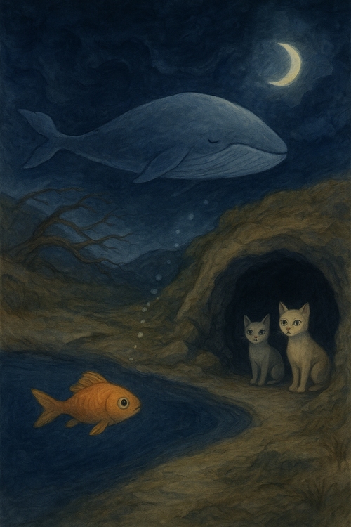 Снился себе маленькой рыбкой, которая переплывала из одного водного пространства в другое. Водное пространство было поделено на секции, которые были соединены между собой переходами, похожими на воронки или диафрагмы. Преодолев последние «врата», выплыл на просторы большой воды. Проплыл гигантский кит, оставив позади себя шлейф из пузырьков воздуха, и я последовал вслед за этими пузырьками.