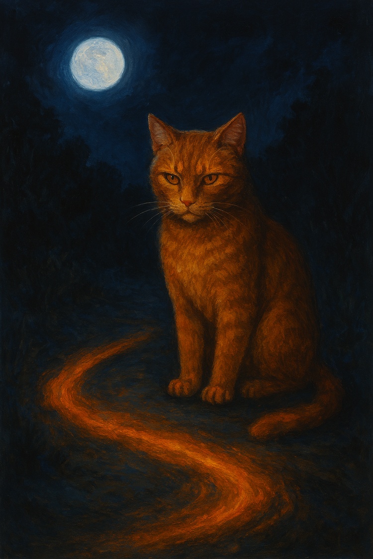 Кот просидел ровно столько времени, сколько потребовалось на то, чтобы прочесть в его взгляде послание — он преодолел кошачий шаблон, вынуждавший его пастись вблизи людей и быть от них зависимым. Он вернул себе свою кошачью сущность и обрёл полную свободу.