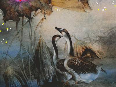 Дикий гусь отразился в водах, пролетая над миром ночью.