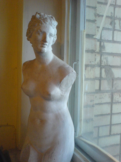 Столик для трапез у меня стоял на антерсолях. Есть в мастерских художников с высокими потолками такой второй этаж внутри помещения открытый на основной объём. Там обычно стоит столик и диванчик для отдыха, где молодые художники выдают иногда премии немолодым натурщицам в виде любовных утех. У меня там ещё располагалась туалетная комната и душевая.