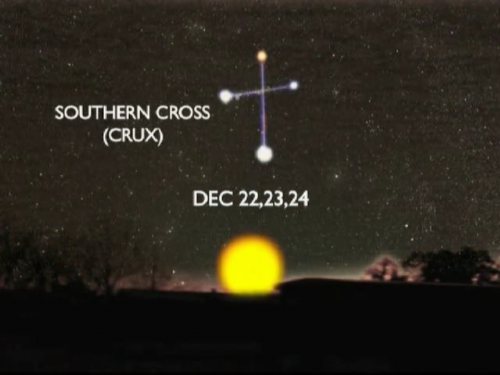 Звезда на востоке - это Сириус, самая яркая звезда на небосводе, которая 24 декабря образует одну линию с 3-мя звездами из пояса Ориона (их еще называют"Три Царя").Эта линия указывает, где встает Солнце 25 декабря...Далее. Солнце в течении всего года уходя на юг (для северного полушария) 22декабря оказывается в наиболее низкой точке на небосвода, и остается без движения в течении 3 дней. Во время этой паузы, солнце оказывается в районе созвездия Южный крест , а после этого, 25 декабря Солнце поднимается на 1 градус севернее. То есть, говоря метафорически, Солнце умирает на кресте 3 дня, затем воскресает и рождается заново...