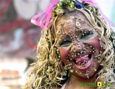 НУ СОВСЕМ ЖЕНЩИНЫ С УМА ПОСХОДИЛИ... ТАК СЕБЯ ИЗУРОДОВАТЬ ! - КАКАЯ ЖЕ ЗДЕСЬ КРАСОТА ? - ЭТО УЖ ПЕРЕБОР В УКРАШЕНИЯХ ДА ЕЩЁ НА ЛИЦЕ.... А ВЕДЬ МОРДАШКА-ТО НИЧЕГО, СИМПАТЯГА, НО ТОЛЬКО КТО ЭТО ТЕПЕРЬ УВИДИТ ? ДА И НЕПРИЯТНО, БОЛЬНО ЖЕ ОТ ВСЕХ ЭТИХ ВИСЮЛЕК И БИРЮЛЕК... КАКОЙ-ТО УЖАС...