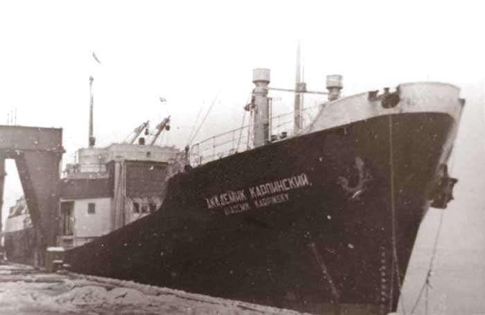 Итак, в 1936 году судно было построего в немецком Эмдене, получило имя «Thalia» и вошло в состав военно-морского флота Германии. «Thalia» перевозила грузы в Испанию - пока Франко и Гитлер были друзьями. В 1943 году дружба кончилась, и в порту Кадис франкисты интернировали пароход. В мае 1945 года весь экипаж с пароходом сдались англичанам. Над судном был поднят флаг уже Королевского военно-морского флота, само судно переименовали в “Еmpire Consett” и до 1946 года перевозили на нем грузы антифашистской коалиции. Попав под репарацию и снова сменив владельца, уже под «серпасто-молоткастым» красным флагом и новым именем «Академик Карпинский» продолжил службу в Балтийском государственном морском пароходстве.