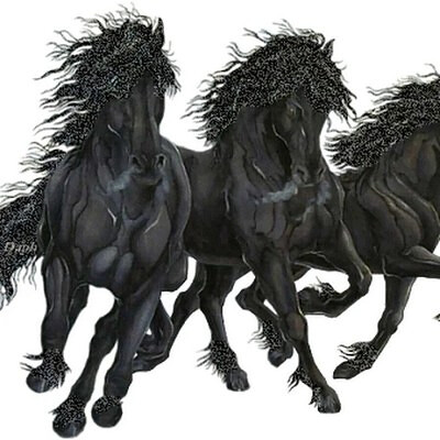 Три лошади, иссиня черной масти, отделившихся от остальных участников поединка, вырвались вперёд. Их всадники, переставшие понукать ими, летели к финишу и вместе, на одном дыхании пересекли финишную черту, как вдруг, скинув своих седоков, они рванулись дальше, туда, где лишь забор отделял это грандиозное шоу от чистого поля. Вслед за ними, роняя своих седоков, ринулись остальные их участники. Легко воспарив ввысь, одна за другой, перепрыгнув своё последнее препятствие, и уже, не стремясь перегнать друг друга, единой стаей они исчезли за горизонтом в ярких сияющих лучах солнца на глазах изумленных зрителей и участников происшедшего.