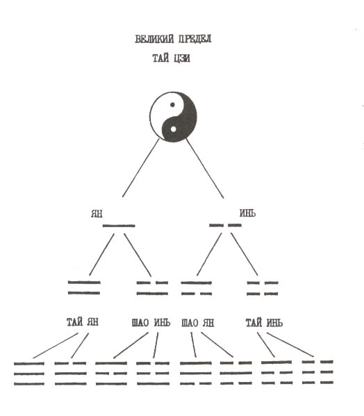 *"Великий предел (разделение) (кит. трад.;;, упрощ. ;;, t;ij;, «Тайцзи») — этап исходного космогенеза в представлении китайской философии, предельное состояние бытия, наибольшее разделение на прошлое и будущее, начало времени и всех начал, причина выделения двух сил: инь — женской и ян — мужской. Предыдущая категория — «беспредельное» или «отсутствие предела (разделения)» (англ.)русск. (кит. ;;, ;;, w;j;, У Цзи). Термин впервые встречается в одном из канонических комментариев к «И цзин» — в «Си цы чжуани», чжане 11-м:"