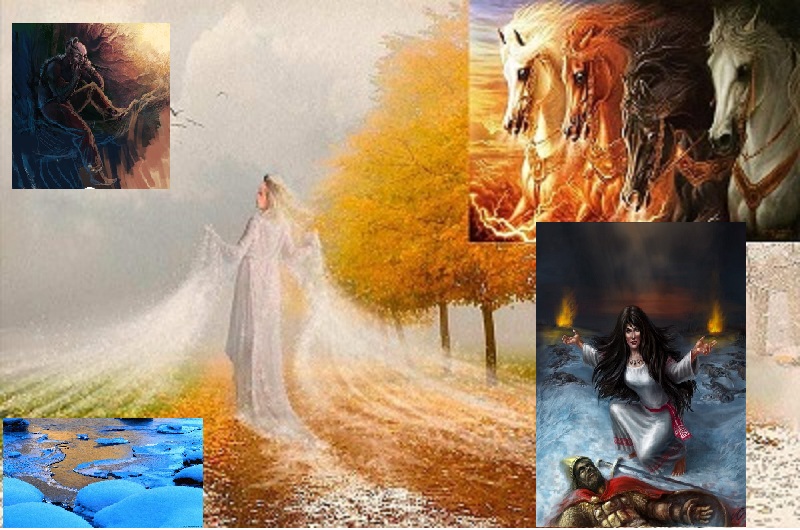 * - В славянской мифологии Марена (Марана, Морёна, Маржана, Маржёна) связывается с воплощением смерти, с сезонными ритуалами умирания и воскресения природы, а также с ритуалами вызывания дождя.