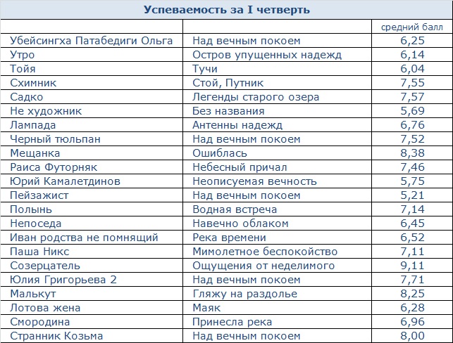 Перед вами оценки, полученные курсантами Школы Трудолюбия за выполнение задания Первой ступени.
