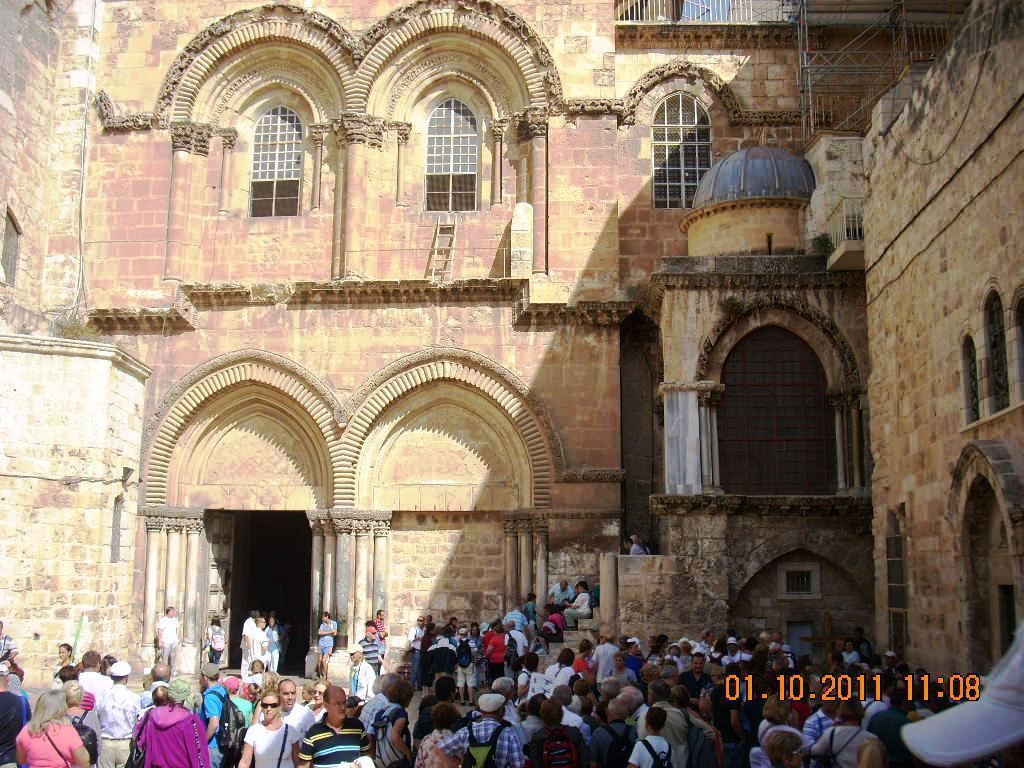 Подходя к Храму Гроба Господня в Старом городе мы с женой были неприятно удивлены – на узком выщербленном карнизе второго яруса над главным входом кто-то оставил невзрачную деревянную лестницу-стремянку.