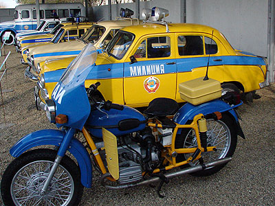 Современное обеспечение самой совершенной техникой 60-х годов: Курганский автобус, Москвич-407 с динамиками, Мотоцикл М-72 с запасным бензобаком.