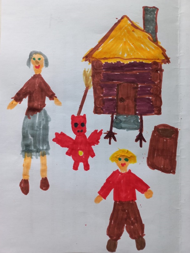 Путь мальчика лежал через дремучий лес, в котором стояла эта избушка, а жила там вредная старушка: Бабка Ёжка.