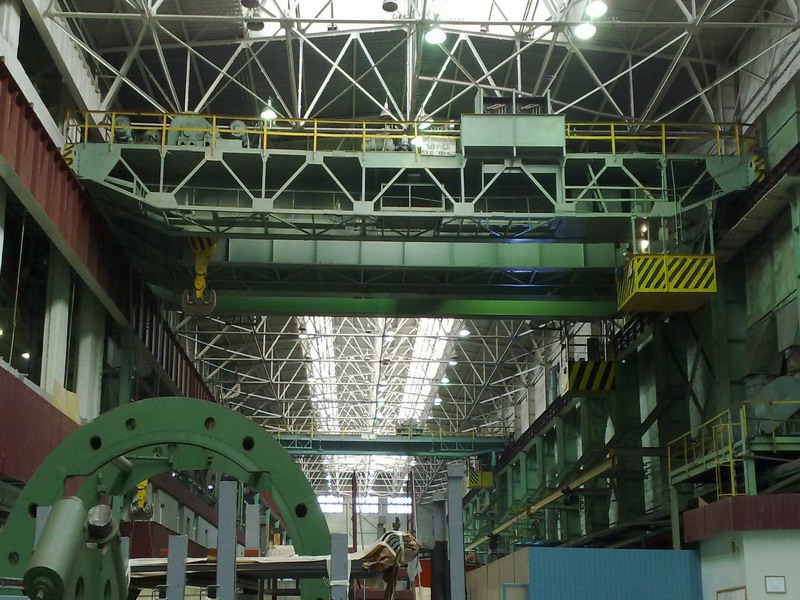 И вот апогей...! Мастер Дима поднимается на самый верх крана с огромным гаечным ключом в руке. И присаживается возле тормоза на ходовой тележке. Я сижу в кабине, держа в руках рычаги контроллеров. Стропальщики подцепляют станок на самые толстые чалки, которые нашлись в цеху, и поспешно отбегают. Я тяну на себя рычаг подъёма. Кран низко присаживается и натужно гудит. Медленно-медленно, по миллиметру, станок отрывается от платформы и зависает в воздухе. Тросы звенят как струны, двигатель греется и потихоньку дымит от непосильного напряжения.