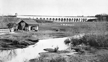 Один из первых акведуков находился около современной улицы Клубной, проведенный через небольшую речушку, о чем уже упоминалось, когда шел рассказ о Тайнинском селище. Второй акведук находился от первого примерно метров за 200, а третий проходил через речку Ичку. Самый большой и знаменитый из них выстроили через Яузу около села Ростокино, получивший название «миллионный». Все предыдущие акведуки со временем обвалились, а Ростокинский возвышается до сих пор, напоминая о первом московском водопроводе. Он насчитывает 21 арку, а его общая длина 356 метров.