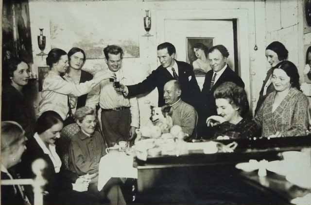 Имена семи остальных гостей неизвестны: ни тех, кто чокается (мужчина и женщина), ни сидящей слева от Зинаиды женщины, ни стоящих гостей (справа - трооих и слева - одной). Дмитрий Гриневич фотографию в своих "Тетрадях" не расшифровал.