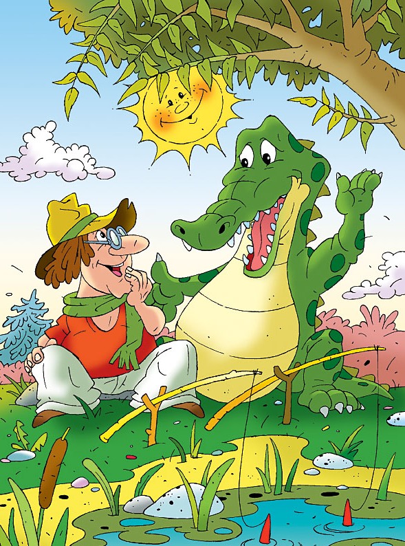 Взял удочку и пошёл на другой берег. Очень ему хотелось спросить почему крокодила не дразнят.
