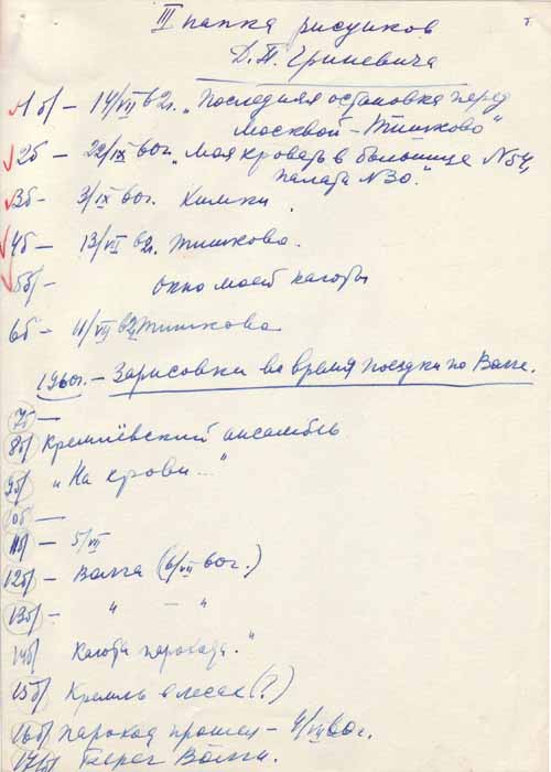 НА СКАНЕ: Опись папки "б" (1-я стр.). По учёту Ф.Ф. Кронгауз это папка №3, в которой порядковые номера рисунков имеют дополнительную букву "б".