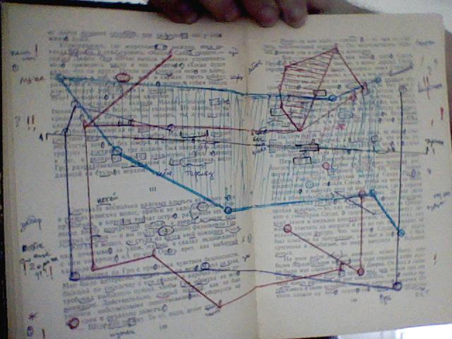 Грин А, те же 2 романа,стр 148 -верхняя строка..."ты потому"...В стык букву Э - шифр ПОЭТЫ и здесь ОБРАЩЕНИЕ к ПОЭТАМ -к вам!..."НАЙТИ ЛУЧШЕГО СПУТНИКА"...МЕЧ-нло...Тут , в верхней строке секрет шифра ДЕВ...луч,КАИН (библия)На стр 149 начало страницы "Много" -ГНОМ, нии...НАЛЁТ и много другого!Буквы Ц - рис одного крыла НЛО...На правой стр верх - 6 восклиц знаков -парусник и у мачты см слово "скотина" - это и шифр никотина и многое другое...На палубе выделен шифр КЛОН и в этой же строке ш:держав, каста...и др...А вот в левом крыле - он же как бы нос некоего корабля -стр 148 ..."поцеловала в лоб"..Вот здесь всё самое важное:ш ЦЕЛКА, раз...ведка,пилау (порт в Европе), будка, УМ,МОЛ,...и др...