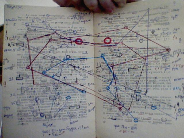 Грин А, с 178, строка 34 и 3-я снизу даёт ш тать, щит,ад и др...Рисунок дом из восклиц знаков и ОЙ...построение сложное -правая стена из букв ой даёт букву М...метро.Буквы Ц дают рис НЛО с трапом.+Б.Медведица..Когда вы по шифру НЛО проведёте луч, то он выведет на многие ШИФРЫ: 2 ключа, трость,явку (слово "заявил" и ку рядом),розу,КАТАНА -28строка, рядом с Галераном, она же ГАЛЕРА...и ш ДЕРЖАВА...На 38 строке см стык слов ,..."ДОМ С КРА СИВЫМ"- КЛАДОМ.. с-секрет!!А секрет в букве Р-Л=кладом, как и в ГЛЯДОМ-гляд = клад...Видны на рис ярче всех пометок и два красных кругляка -ш ПРОЙМА.Они как лва колеса катятся по крыше домов..См ранние сообщения..