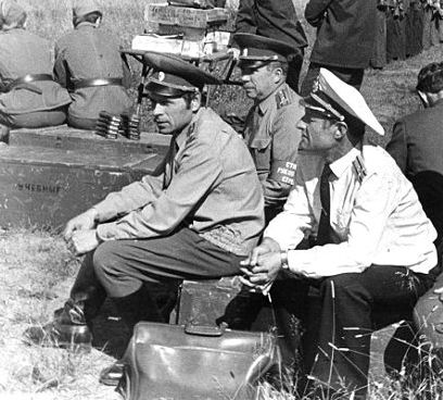 см.ФОТО:Три начальника первых курсов ВВС,ВМФ и пехотный..Наш, начальник первого курса,второго сухопутного факультета, подполковник Е.А.Исаев, по средине.