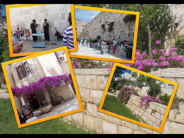 Конечно, мы посетили Стену Плача. Кстати, добраться до нее от улицы Короля Джорджа не так-то просто. Отполированные до блестящей, лаковой скользкости камни мостовой, узкие еврейские и арабские кварталы, раскаленные солнцем, сплошные повороты, лестницы спуска, изнуряющая жара, невозможность спросить дорогу. Муж побывал и в Храме Гроба Господня и в храме Александра Невского, поставив везде свечки, чего раньше никогда не делал. У стены плача, разделенной на две половины: мужскую и женскую, можно было наблюдать экстаз истово верующих. Они раскачивались в трансе, припадали к древностям, читали молитвы и проявляли чувства самым невероятным образом. Там поставлены пластиковые стулья, и те, кому трудно стоять, могут просто сесть лицом к стене и помолиться, попросить, поговорить с Богом в таком святом месте.