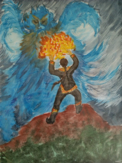 В это время шаман, а он действительно существовал и не был выдумкой принцессы, боролся с водяным царём, но не сумев одолеть того, вынужден был подняться со дна царственной и могучей реки весь израненный и измученный борьбой. Шутки ли бороться с водяным царём ещё и под водой.