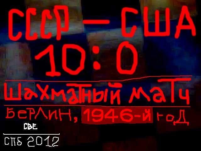 «В 1946 году в Берлине между советскими и американскими военнослужащими был организован шахматный матч на десяти досках.