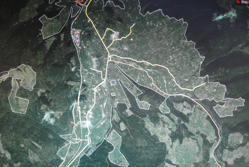 Микуличин. Центральная часть села. Слева по западной окраине тянутся ЖД. Параллельно «бежит» Прут. Автодорога бегает с одного берега на другой. Поэтому мостов предостаточно.
