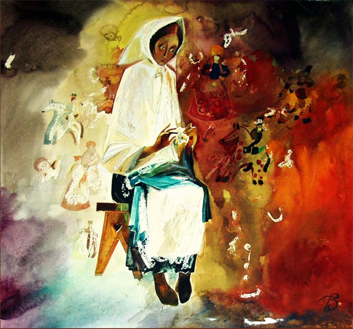 С колодезной лучистой колосистою хлебной молодильной гибкою водицей...