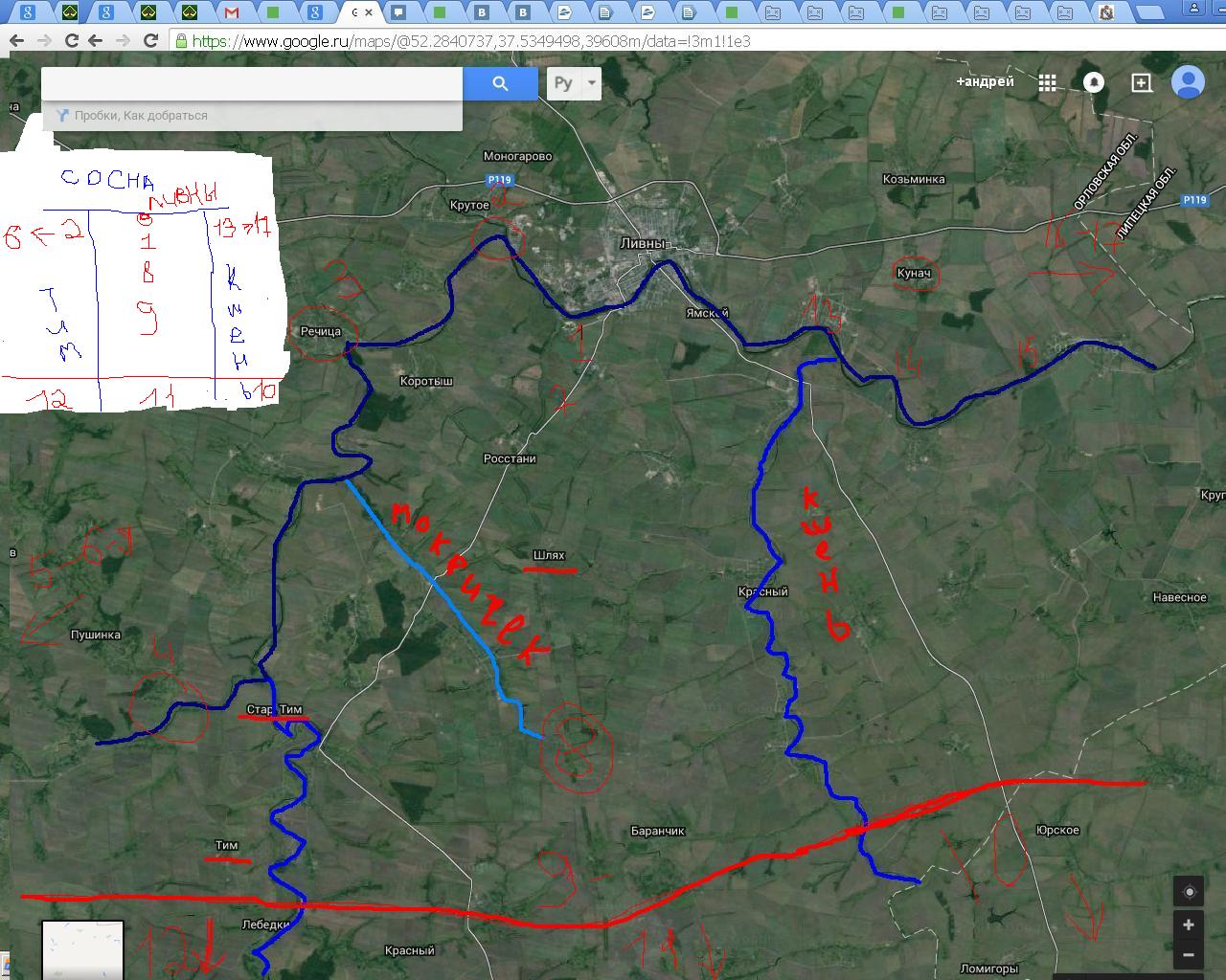 1. Оказывается вся система сторож Ливен 1626-1627 годов выстраивалась относительно двух осей! Муравского шляха с севера на юг и линии река Сосна с запада на восток.