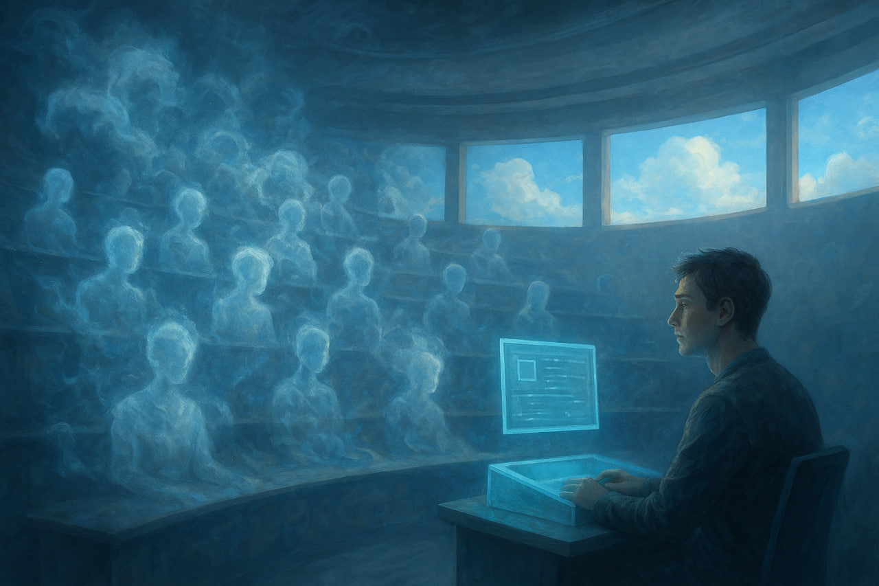 Через мгновение адаптационное поле его места, созданное для минимизации отвлекающих факторов, наложило голограмму на объекты восхищения. Все студенты приняли вид гуманоидов.