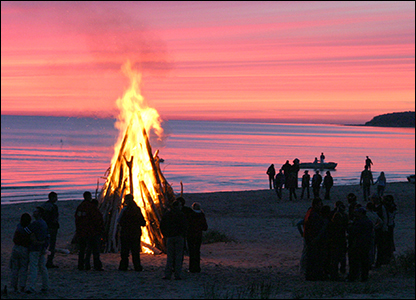 Сколько за день выпито галлонов пива пенного - не счесть! А ровно в полночь самые разгорячённые поскидывали с себя одежду и бросились в прохладные воды моря. Особо смелые купались голышом. Современные парни и девушки давно уже не ползают в лесных зарослях, под покровом ночи, в поисках цветка папоротника. Куда веселее с разбегу окунуться в волны! К тому же это хорошо отрезвляет. А затем, если позволяет спортивная форма, можно и через костёр перемахнуть - вмиг согреешься. Только костерок поменьше выбрать, иначе пятки подпалишь.