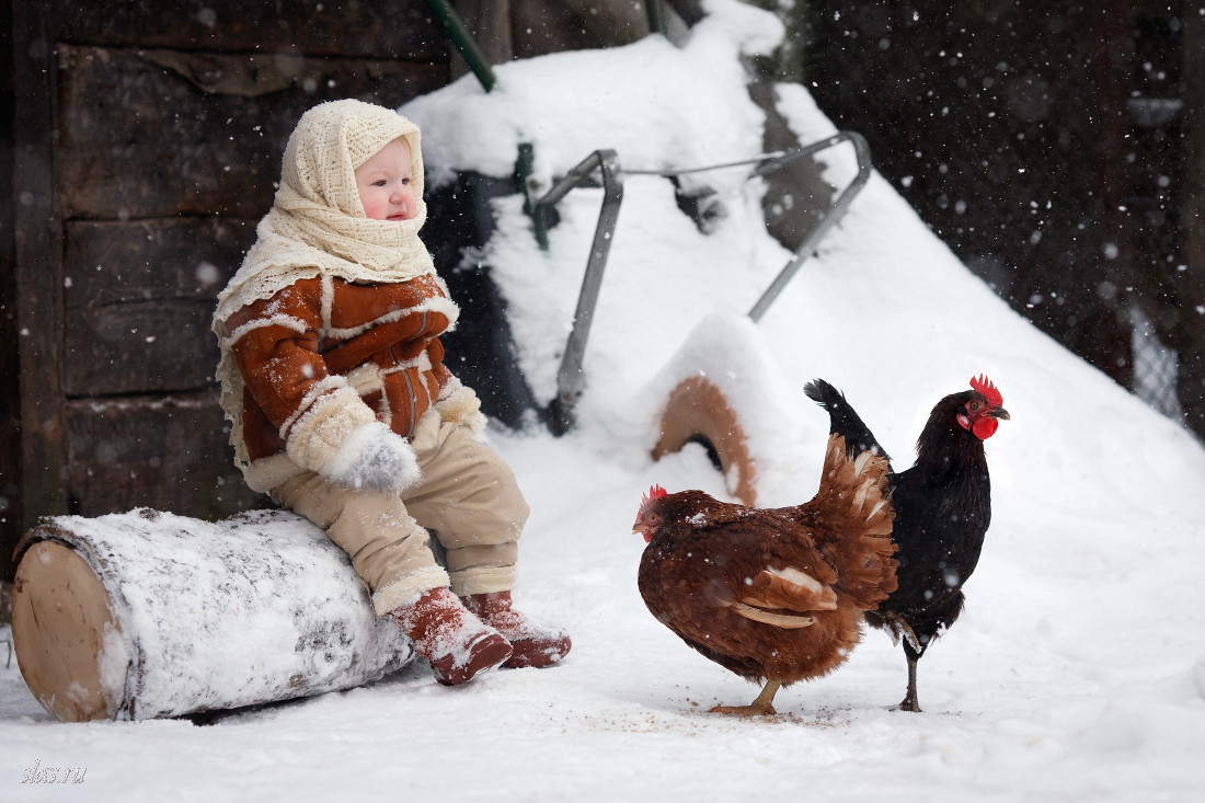 Мама отворяет дверь курятника. Куры и петух, насидевшиеся на насесте, высыпают во двор. Ночью выпал первый снежок. Куры разминаются, оставляя на снегу отпечатки “звёздочек” от своих лап. Петуху снег не помеха. Он деловито справляет свою “мужскую” работу. Мама сыплет курам корм и идёт в избу за едой для Жульбы. Жульба – это красивая, сильная собака, среднего роста. Она сидит на цепи. Мама выносит из избы собачью миску с супом, и с косточкой. Жульба виляет обрубком хвоста и начинает аппетитно чавкать в своей миске. Мурка дымчато-серого окраса прошмыгивает из сеней, и мимо кур подаётся через приоткрытые воротца на огород. Там она на короткое время присаживается у стенки курятника, а затем развернувшись, остервенело загребает лапами снежок на место своего “преступления”. Около кур вьются вездесущие воробьишки, стараясь урвать вкусненького. Я стою и смотрю на это во все глаза, ещё не зная, что через пять минут Жульба цапнет меня за палец, когда я попытаюсь показать ей на косточку в миске , думая, что она просто не заметила её...