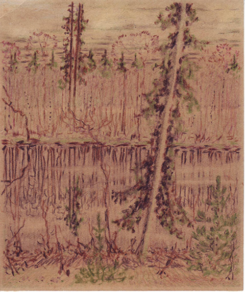 65. Рисунок Гриневича Пруд весной