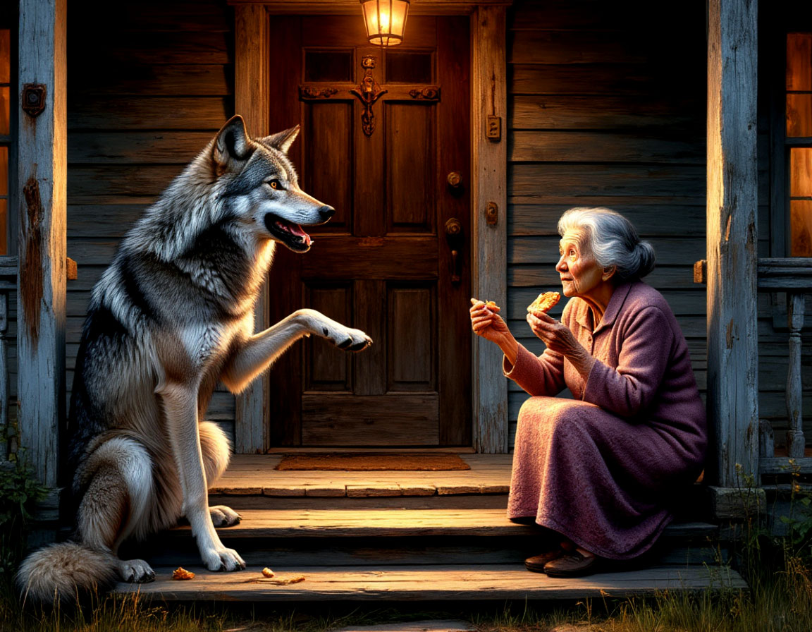 - Голодный, да? – спросила женщина. Погодь, я тебе ещё что-нибудь принесу. Она встала и пошла в дом. Волк открыл вслед за ней дверь, прошёл в комнату и лёг на старый диван, на котором, будучи человеком, провалялся пол жизни. Хозяйка увидела пса, мирно лежащего на диване положив голову на лапы, грустно усмехнулась: Вот и Вася вернулся! Пойдём, Василёк, я там тебе борща наварила.