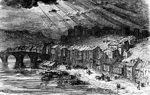 Решив на этот раз подождать до глубокой ночи и не врываться в дом, они сначала подкрепились в трактире, а после снова расположились у его входа, будто продолжали отдыхать. Тем временем горбун снова вышел из дома и направился вдоль улицы. Он просунул под двери некоторых домов какие-то листы и вышел на дорогу, ведущую наверх, к замку.