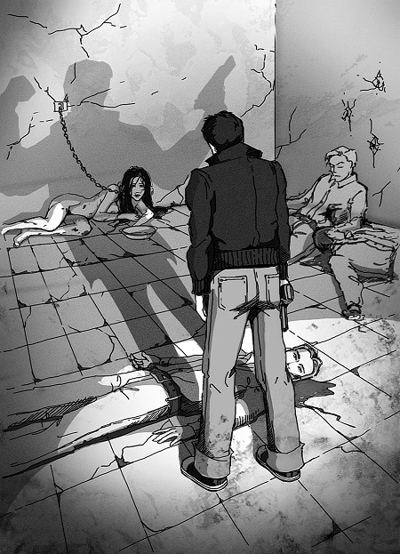- Егор, подожди…я хотел тебе спросить… - Но Егор не обращал на его слова внимания и, словно овечку на привязи, продолжал вести вперед. Остальные пять человек, включая Дарью, следовали за ними. Войдя в темную комнату, на Виктора стали накатываться беспокойство, граничащее с безумной паникой. «Неужели они вновь решили мучить меня?» - Подумал Виктор, как сразу в голове раздалось: «Не бойся, я не допущу». Когда вся компания вошла в комнату, Егор отошел от гостя, закрыл на ключ дверь и включил свет. После увиденной картины Виктор еле сдерживался, чтобы не начать сразу стрелять. В дальнем углу лежала абсолютно нагая Кристина, на шее которой находился грязный собачий поводок. К поводку от стены была прикреплена цепь. Волосы её были растрепаны, а лицо заплаканно. Все тело покрывали синяки и гематомы, местами виднелась застывшая кровь. Рядом с девушкой стояла миска с водой. Их с Виктором взгляды пересеклись. «Бедная милая Кристина, что они с тобой сделали!?» - Мелькнуло в голове, а следом : «Мы отомстим…»