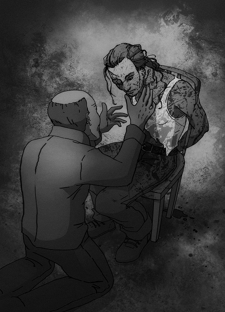 - Мы оба знаем, что мы ничего не сможем сделать. Уходи! - После этих слов Аркадий выполнил просьбу и обнял Филиппа как своего, родного сына, коим и считал его всю жизнь. От травм, полученных после пыток, объятия причиняли физическую боль, но так успокаивали душу. Филипп закрыл глаза и на миг представил, как здорово было бы сейчас оказаться дома на кухне, за столом рядом с мамой и Аркадием. Просто посидеть и поговорить ни о чем, увидеть на их лицах улыбки, слышать их голоса и провести так весь день! Аркадий уже не старался сдерживать слезы, и негромко сказал: «Я понимаю и люблю тебя, сынок», а после, резко схватил за голову и одним рывком свернул своему пасынку шею. Опыт прошлых лет помог все сделать быстро и безболезненно для Филиппа - жизнь его оборвалась в мечтаниях и воспоминаниях о доме, о семье и о любви. Все так же обнимая бездыханное тело Филиппа, Аркадий издал крик душевной боли и скорби. «Что там происходит?» - Кричал Федор. Послышался топот бегущих людей за спиной. Еще мгновение Аркадий смотрел на своего пасынка «Словно спит мой мальчик» - Промелькнуло в голове, затем, отпустив тело, быстро схватил со столика небольшой нож и один из топоров, что был побольше, встал, развернулся и уверенно зашагал навстречу бегущим на него людям, спрятав оружие за спиной.