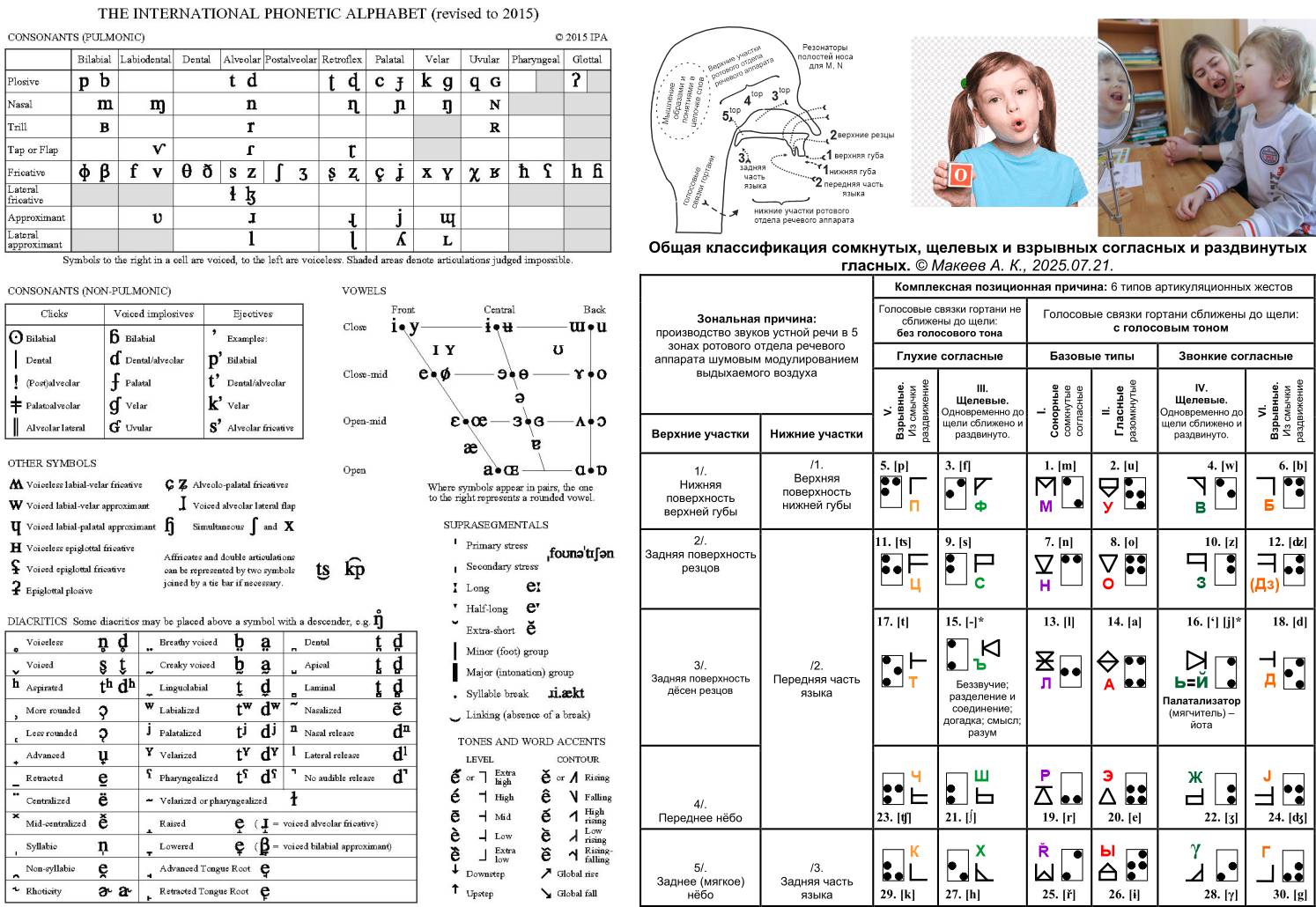 4. Макеев А.К. Общая классификация согласных и гласных звуков речи // Научный взгляд в будущее. – Выпуск 4. Том 10 – Одесса: КУПРИЕНКО СВ, 2016 - 90 с. С. 64-81. ЦИТ: sl316-134 DOI:10.21893/2415-7538-2016-04-10-134 УДК 612.789+81.345.5 ISSN 2415-766X(Print) ISSN 2415-7538 (Online) ББК 94 Н 347 URL: http://www.sworld.com.ua/nvvb/n416-10.pdf