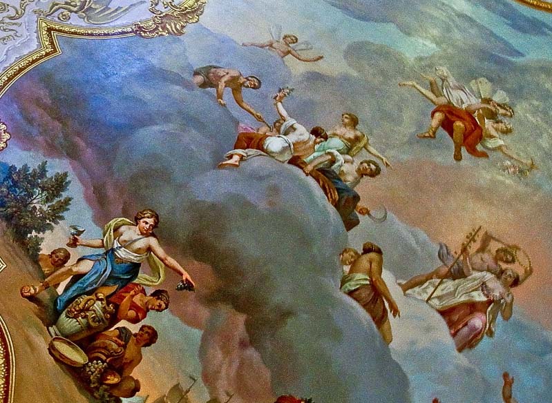 Легенда рушила мою теорию о золотой нити судьбы, даже имея целый клубок золотых нитей Ариадна осталась ни с чем. Нити в легенде были не золотыми, но они спасли жизнь героя значит «золотые» фигурально выражаясь. Но я продолжил верить в свою теорию золотых нитей судьбы, оказалось не зря. В Екатерининском дворце почти в Санкт-Петербурге великолепная роспись на потолке, любовь, да и только, слегка завидно. Оказалось, главная героиня слегка без одежды это та самая Ариадна, золотые нити судьбы, после побуждения помогли ей встретить не героя, а гораздо лучше, а именно, героя любовника, в смысле героя в постели и не только в постели и в других местах. Ариадна вышла замуж за Диониса. Дионис — в древнегреческой мифологии младший из олимпийцев, бог растительности, виноградарства, виноделия, производительных сил природы, вдохновения и религиозного экстаза. У него даже имя с двумя ударениями пишется, вообще, супермуж Ариадне достался.