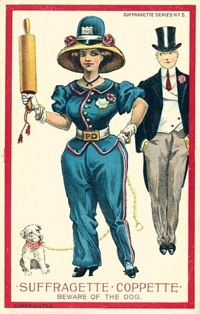 Иллюстрация: “Suffragette Coppette”. Почтовая карточка начала XX века.