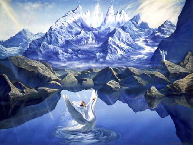 И не заметила, как грёзы дивные сменились вмиг на чудо проявления: в сиянье сказочном выходит Лебедь к ней и с речью к нашей Деве обращается.