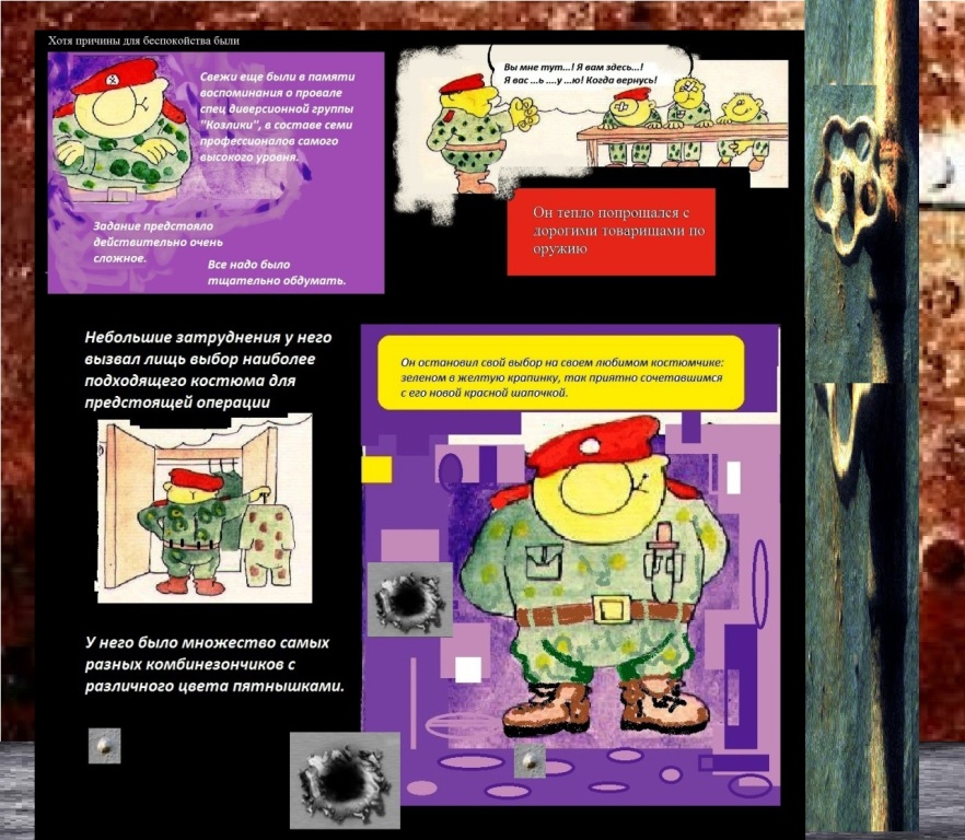 И все же стоило подумать над заданием, хотя все его существо противилось этому... он по натуре был интуитивистом и предпочитал решать на месте, так же как в дни выплаты вознаграждений за пойманных и побитых привык считать купюры и мелочь не отходя от Банкомата. Банкомат это такой спецагент который сидел внутри небольшого бокса закамуфлированного под обычный банкомат. Это делалось на случай несанкционированной попытки получить непричитающееся вознаграждение... и было очень предусмотрительно, поскольку полностью исключало и криминальные попытки взлома и хакерские атаки комплексов противника. Шпион или еще хуже диверсант проникший каким-нибудь немыслимым образом на Базу не смог бы получить наличность даже по украденной банковской карте и обречен был на медленную голодную смерть в коридорах Базы. У Банкомата были фотографии всего личного состава Базы, с которыми он постоянно сверялся и потому выдача вознаграждений происходила медленно, поэтому особо нетерпеливые такие как сержант Рэд били ногой или рукой по корпусу бокса, после чего в результате сильной компрессии и звукового сотрясения Банкомат выдавал требуемое быстрее находясь в состоянии легкой контузии и астено – невротической реакции.