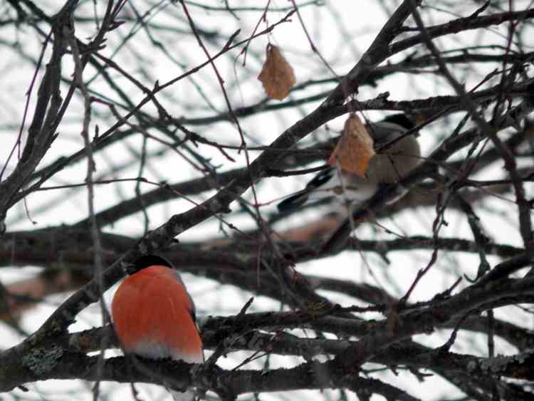 Я вижу уже в окно, как самый смелый и сильный снегирь занял оборону у семечек.