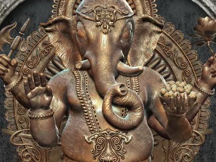 Например, правый бивень поломан неспроста. Он указывает на то, что успешность в делах будет достигнута при активном праническом канале Ида, расположенном с левой стороны, в то время как Пингала (правый практический канал) должен быть "подавлен".